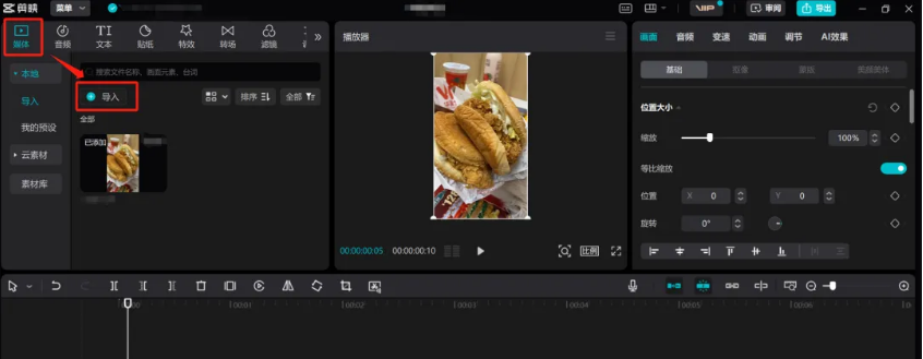 打开剪映软件,导入你自己拍摄的美食图片或视频。